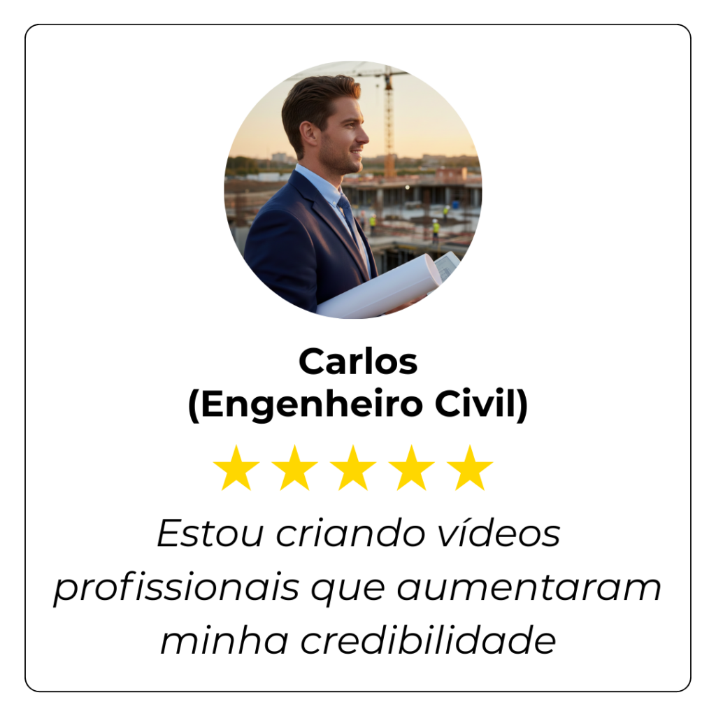 Mesmo que você nunca tenha criado vídeos antes, o passo a passo é claro e acessível, pensado para profissionais da área da construção.